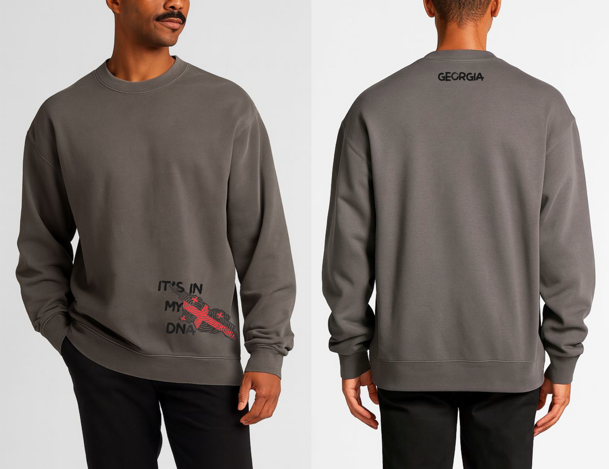 Show your pride with this distinctive crew featuring the Georgian flag and the bold statement "It is in my DNA." Crafted to celebrate heritage with a confident, expert touch, this design connects tradition and identity in a stylish, meaningful way. Perfect for those who want to carry a symbol of their roots wherever they go.
