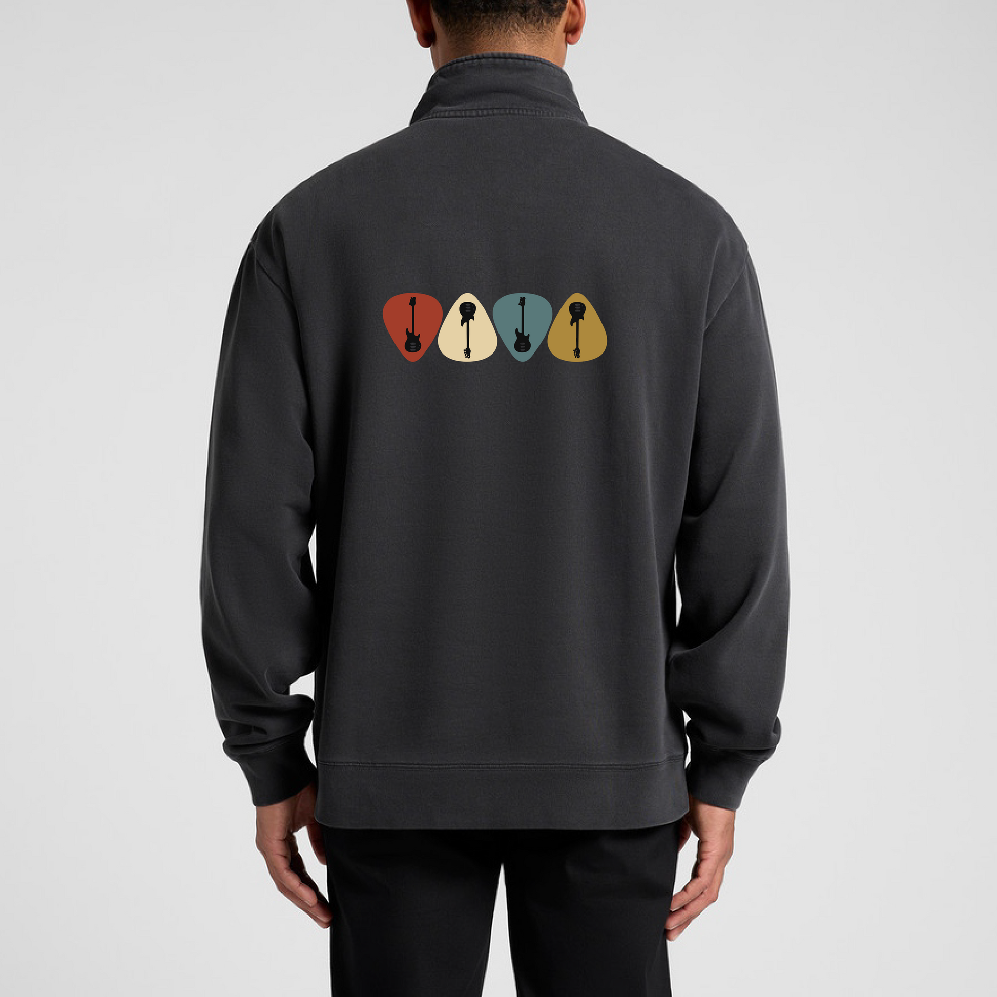 For music enthusiasts who live and breathe their craft, this half-zip sweater delivers understated style with purposeful design. The front features a striking guitar print that speaks to your passion, while the back showcases four guitar picks—a subtle nod to the tools of the trade. Crafted for comfort during practice sessions or casual wear, it's the perfect piece for guitarists who want their apparel to reflect their identity. Premium construction meets artistic expression in one versatile layer.