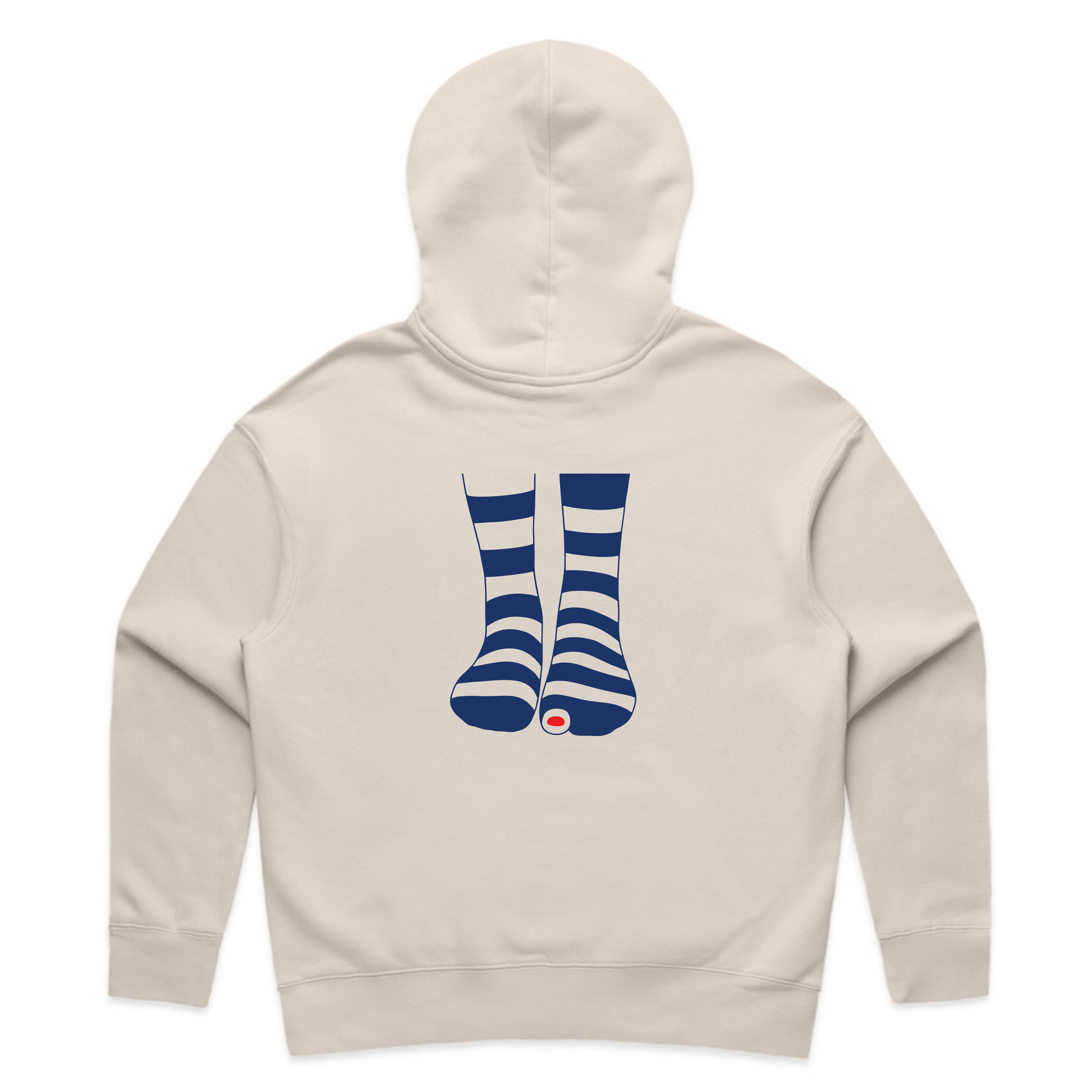 Stay cozy and playful with our Striped Socks Hoodie, designed for anyone who loves fun, expressive, and feel-good fashion. This premium women’s (or unisex) hoodie features a bold back print of two cute, striped socks illustrated in navy and pink—adding a touch of personality and humor to a classic streetwear silhouette.